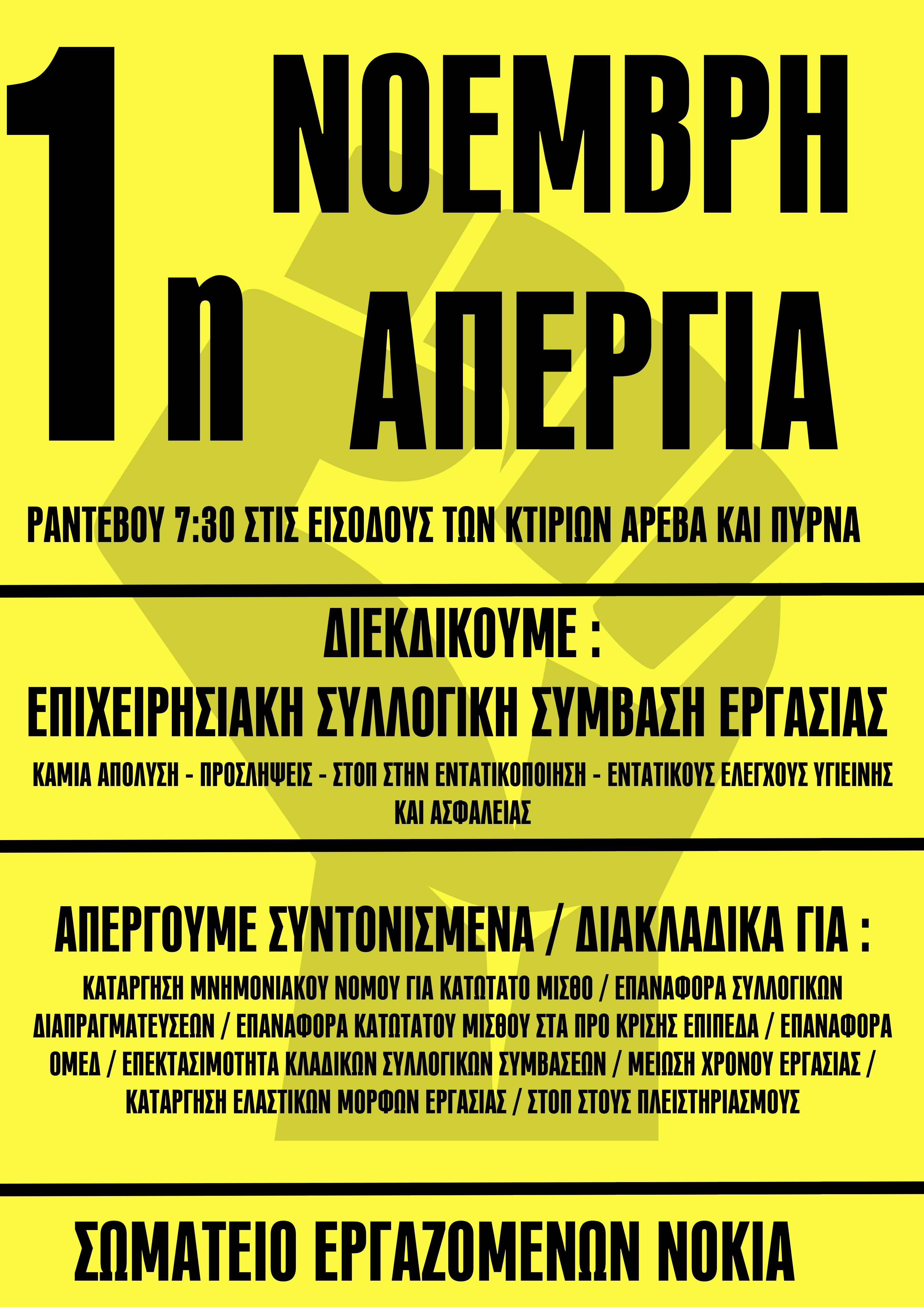 Όχι στις απολύσεις! Όχι στην δουλειά όλη μέρα! Όλοι στην στάση εργασίας και την ΓΣ Τρίτη 23/9 Nokia LabourUnion4 weeks ago3 weeks ago 0