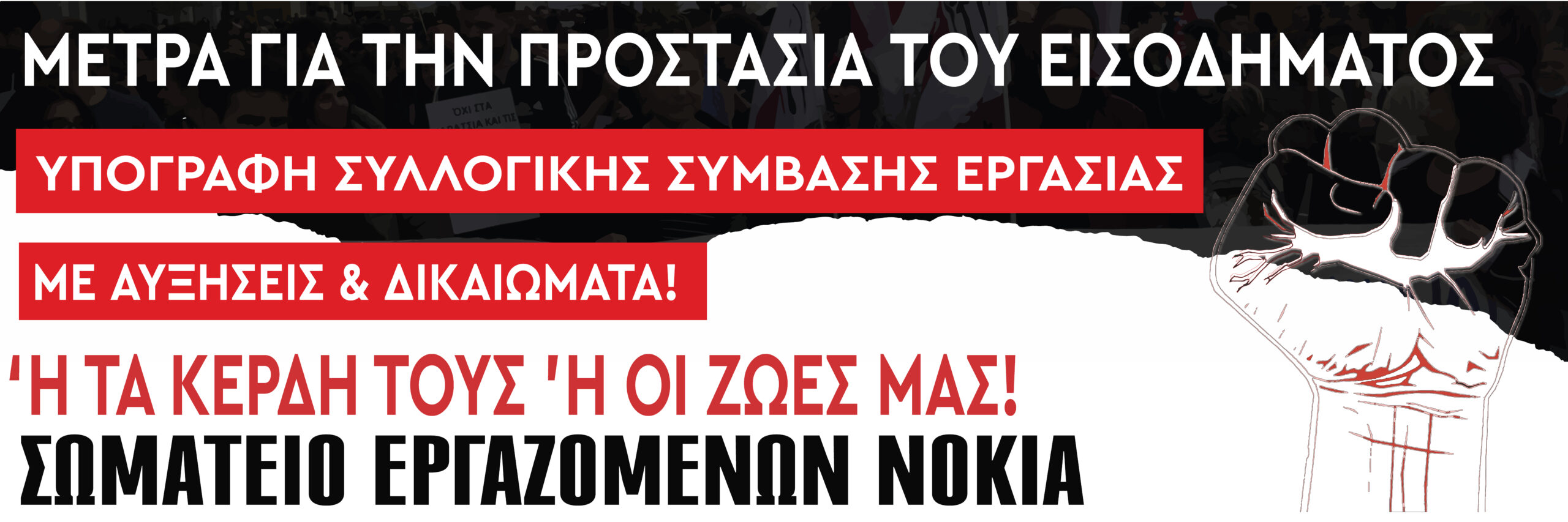 Μαζί με τα αιτήματά μας στην ΝΟΚΙΑ, ενώνουμε την φωνή μας για να φύγουν από την μέση όλοι οι νόμοι που εμποδίζουν την υπογραφή Συλλογικών Συμβάσεων και τις αυξήσεις των μισθών: