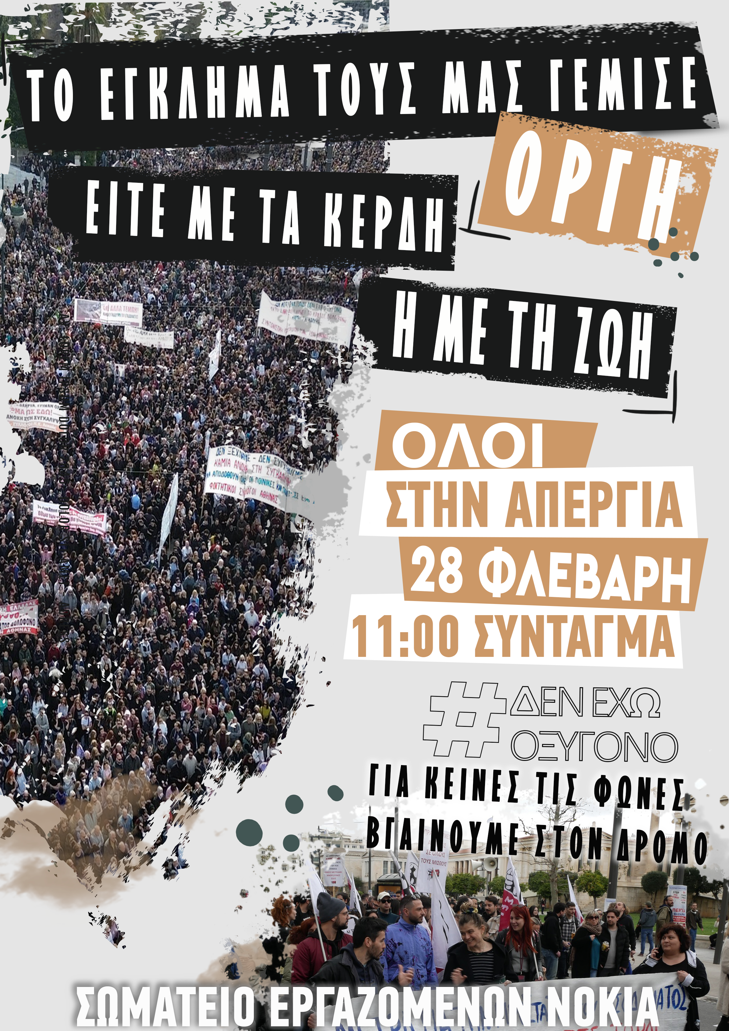 Στη ΝΟΚΙΑ, βήμα κλιμάκωσης του αγώνα μπροστά στην απεργία της 28ης Φεβρουαρίου, θα είναι η Γενική Συνέλευση στις 11/2, στις 16:30.