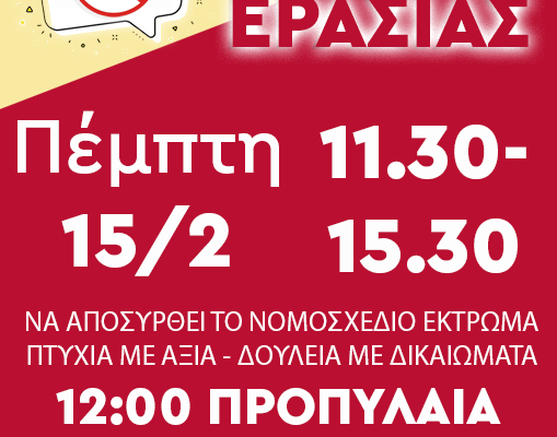 Συλλαλητήριο για την κατάργηση του Νόμου Χατζηδάκη – 22/2 στις 6.30μμ – Κοινό κάλεσμα Σωματείων