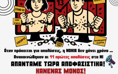 Όταν πρόκειται για απολύσεις, η ΝΟΚΙΑ δεν χάνει καιρό … Οι πρώτες 11 απολύσεις από τις 17 ήδη ανακοινώθηκαν στο ΝΙ, απολύοντας σχεδόν μια ολόκληρη ομάδα με διορία τέλη Δεκέμβρη. … Continue reading Όχι στις απολύσεις! Όχι στην δουλειά όλη μέρα! Όλοι στην στάση εργασίας και την ΓΣ Τρίτη 23/9